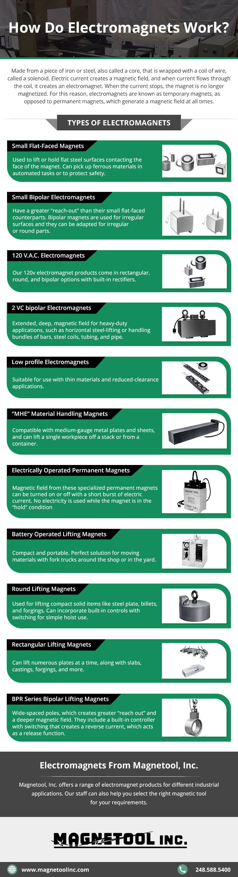 Magnetool, Inc. uses the basic operating principle behind electromagnetism to make an extensive range of electromagnets suited to different applications. These products include: