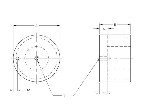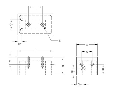| EM-815 | 2-1/2 | 2-1/2 | 1-1/2 | 3/4 | 1/4-20 | 1/2 | 1-3/4* | 3/8* | 8 | 450 | 2 lbs |